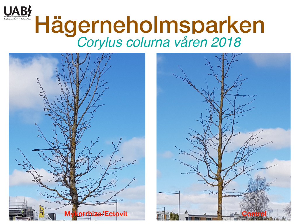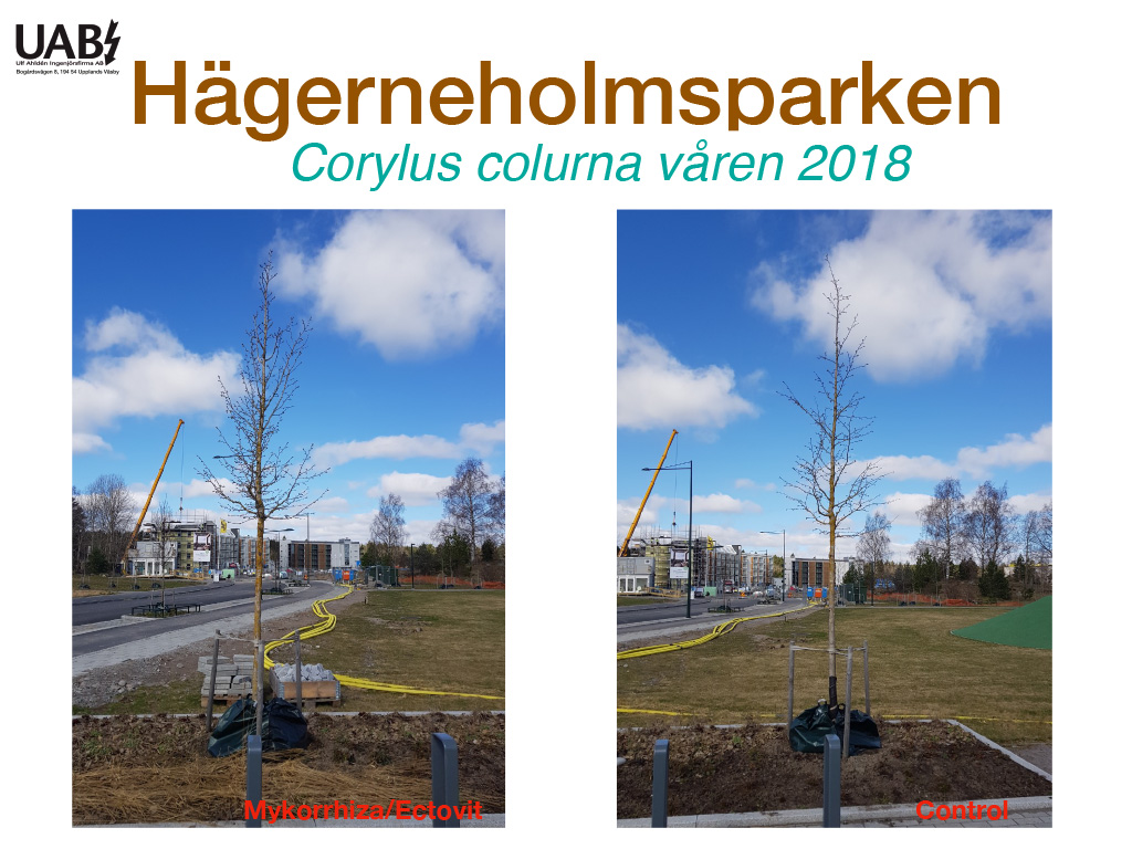 Implementering av ett antal arter av levande mycel till trädens förankringsdel.